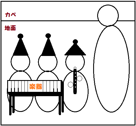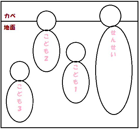 ↑ 前年の課題、「お店やさんごっこ」 とかはこのパターンが使えました。他にも工作とかお弁当の時間などにも。(お弁当の時間の場合は先生の位置に少し工夫がいりますが。)